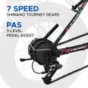 With up to seven-speed Shimano Tourney Derailleur, this electric bicycle offers effortless gear shifting to suit various riding conditions. Hence, you can easily adjust the gears for optimal performance and comfort, whether you need to tackle steep inclines or cruise along flat roads.