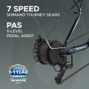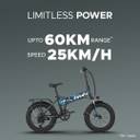 Sporting an up to 250 W motor, this bike ensures consistent acceleration for different terrains. The pedal-assist function supports efficient riding, while the throttle mode allows for effortless movement. With a mileage of up to 40.2336 km (25) per charge, it enables extended travel without frequent recharges. The maximum speed of up to 25 km/hr offers a balanced combination of control and efficiency, making it suitable for both city roads and rugged trails.
