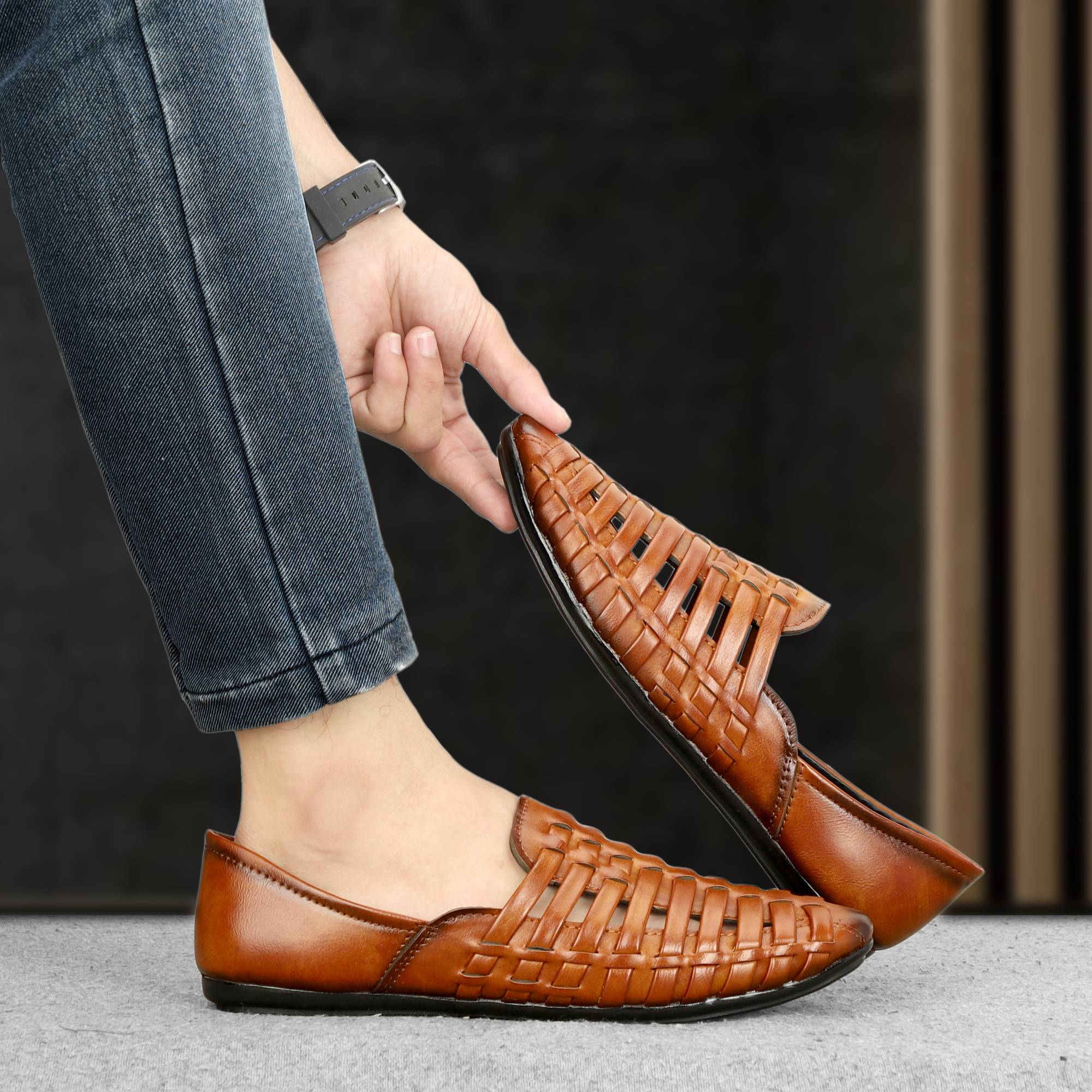 Introducing the Empeno Men's Synthetic Leather Slip-On sandals, the perfect combination of style, comfort, and versatility for any occasion. Whether you're attending a party, a cultural event, or simply looking to add a touch of ethnic charm to your outfit, these mojaris are designed to impress.