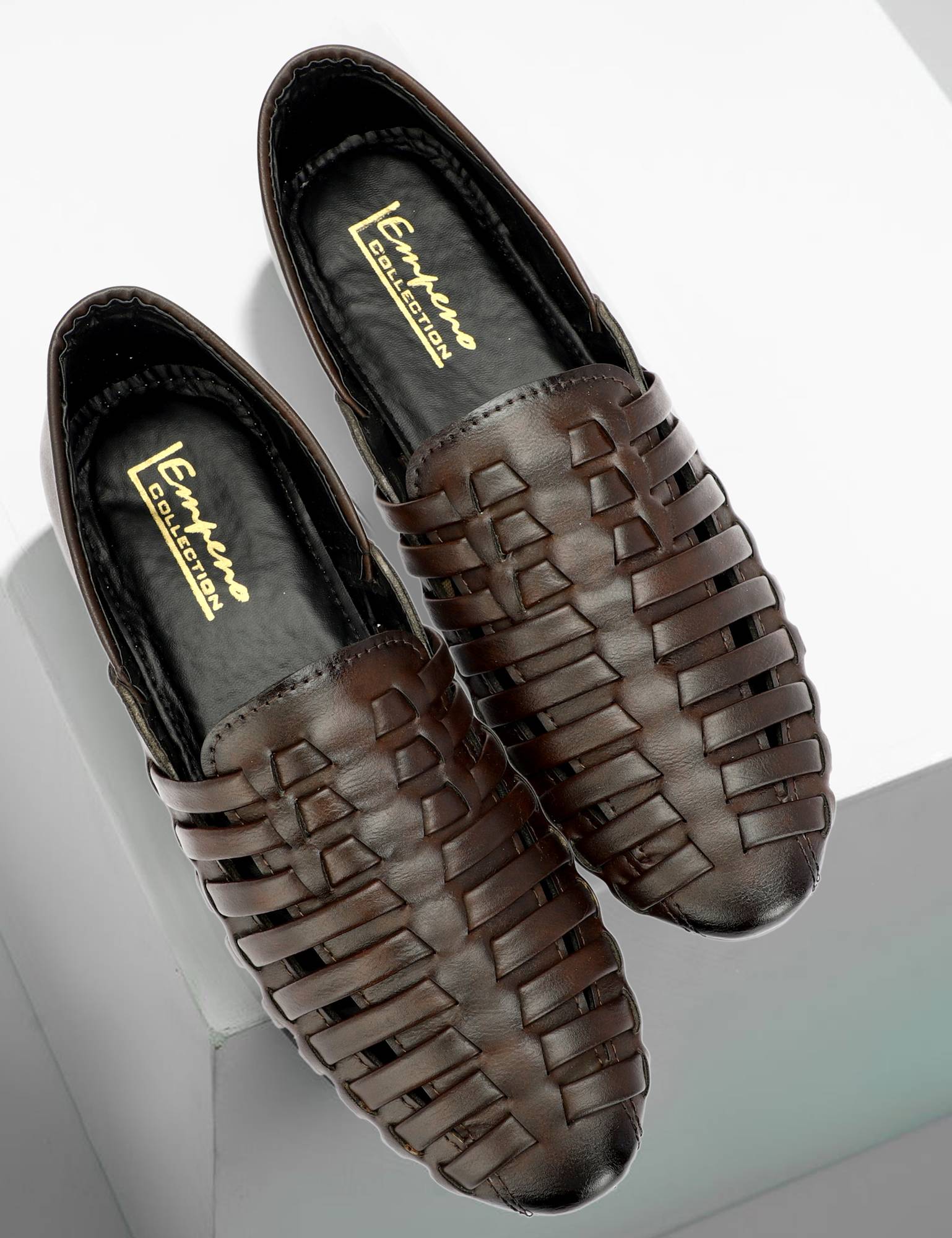 Introducing the Empeno Men's Synthetic Leather Slip-On sandals, the perfect combination of style, comfort, and versatility for any occasion. Whether you're attending a party, a cultural event, or simply looking to add a touch of ethnic charm to your outfit, these mojaris are designed to impress.