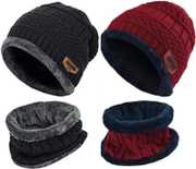 Winter cap and neck warmer for men, women and kids pack of 4