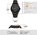 Go bold with this sleek, upscale leather watch from Emporio Armani's Luigi collection. The Armani eagle showcases a captivating partial skeleton dial in this fine automatic timepiece by Emporio Armani. Some other features of this 43mm watch are a black sunray dial, tonal stick indexes and a black leather strap.