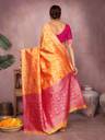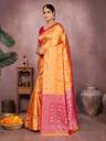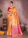 Woven Kanjivaram Banarasi Pure Silk Saree, a true masterpiece that beautifully blends two of India's most iconic weaving legacies – Kanjivaram from Tamil Nadu and Banarasi artistry from Varanasi. Expertly crafted from the finest soft silk, this saree is a symbol of exquisite craftsmanship, cultural richness, and understated luxury.the saree features intricate woven patterns that reflect the grandeur of temple motifs, floral vines, and classic Banarasi zari work – all brought together in a delicate harmony. Every thread speaks of precision and grace, with gold-toned zari weaving that gives a subtle yet opulent sheen. The fabric is incredibly soft and fluid, allowing it to drape effortlessly around the body while maintaining its rich structure.this saree is perfect for weddings, festivals, cultural celebrations, and grand occasions where tradition and sophistication go hand in hand. Ethnic Sarees comes With Blouse Piece, this Saree is Crafted by Skill Craftsmen without Compromising on its Quality. With This Beautiful Design and Fabric, This Saree will fetch You Oodles of Compliments and Praise. saree fit size is 5.5 mtr saree & 0.8 mtr blouse, Free Size |Gold zari base weaving saree. the vibrant color palette, coupled with a finely matched soft silk blouse piece, completes the look, ensuring you feel as majestic as you appear.