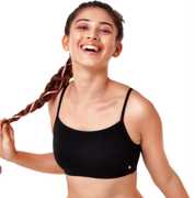 Embrace your journey as an adolescent with comfort and confidence in Enamor's beginner's bra. Made with soft cotton, this wire-free bra offers a no-pinch, gentle hugged feel and a versatile soft-finish cami neckline. The front double-layered fabric prevents show-through, and the antimicrobial finish controls odour-causing bacteria for all-day freshness.