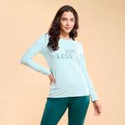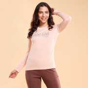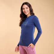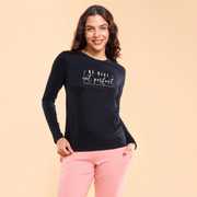 Enamor Typography Women Round Neck Dark Blue T-Shirt