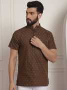 Enchanted Drapes Men Printed Straight Kurta (Purple)