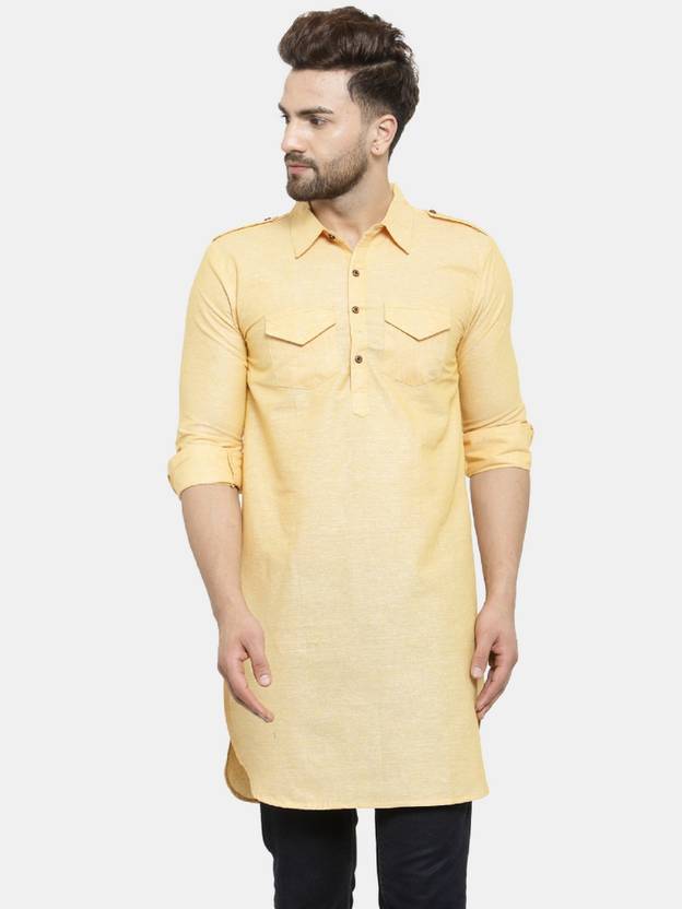 Enchanted Drapes Men Solid Pathani Kurta (Yellow)