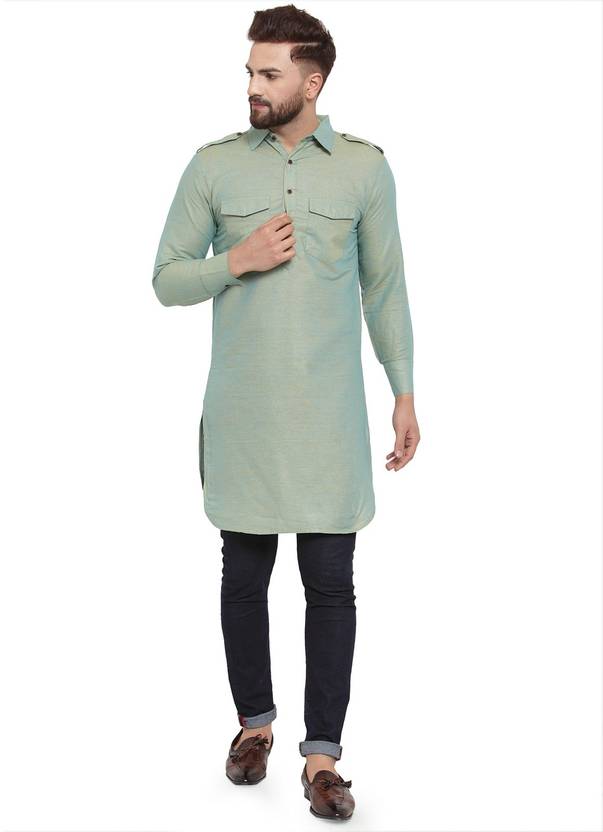 Enchanted Drapes Men Solid Pathani Kurta (Green)