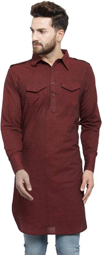 Enchanted Drapes Men Solid Pathani Kurta (Maroon)
