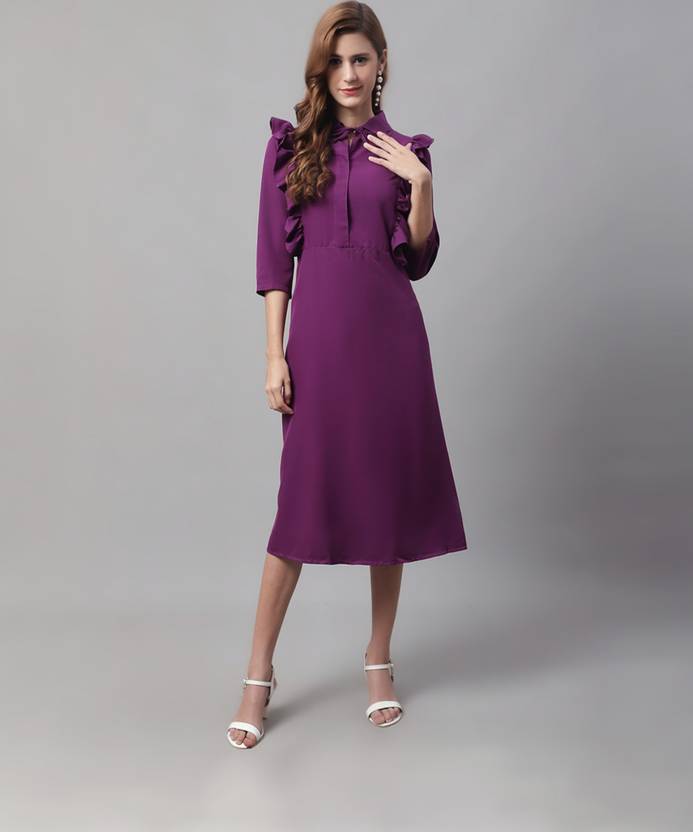 Enchanted Drapes Women A-line Purple Midi/Calf Length Dress