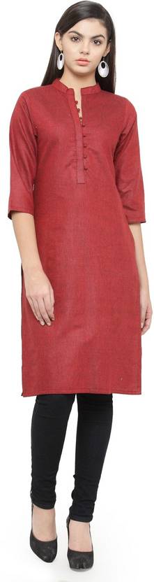 Brand:- Enchanted Drapes • Our USP:- Select Sizes From XS to 7XL • Colour:- Maroon • Material:- Cotton • Package Include:- 1 Piece of Buttoned Down Kurti • Product Description • We are presenting here the latest designer Kurti perfectly for ethnic, casual as well as party wear. These are designed to absolute perfection, this designer Kurti looks very trendy to show & that too keeps you at ease whenever you wear these. These have exclusive designes that gives you a royal & charming look. It immediately grabs the attention of the people around you and makes you look attractive and elegant. This Kurti is very light in weight. This is the only wear which can easily be paired with any design and that too on any occassion • Basic Features • Ideal For :- Women • Design:- Solid Self Design • Sleeves:- 3/4th Sleeves • Neck:- Mandarin Collar • Length:- Knee-Length • Fitting:- Regular Fit • Warm Tip : • Please be reminded that due to lighting effects, monitor's brightness/contrast settings etc, there could be some slight differences in the colour tone of the website's photo and the actual item.