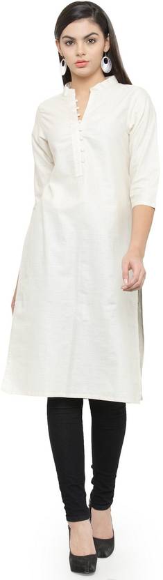 Enchanted Drapes Women Solid Straight Kurta (White)