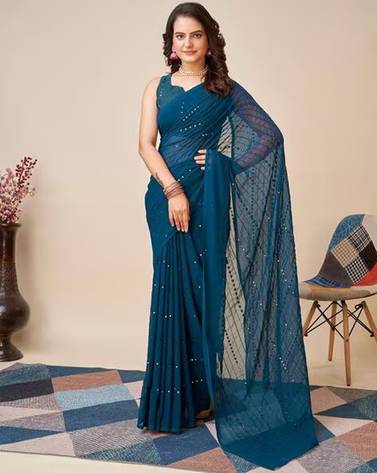 ENCLIQ Georgette Dyed, Solid Blouse Material