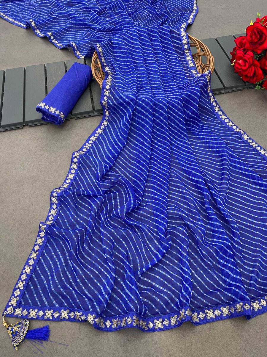This Product is Just the Saree that is shown in the image without Blouse Material. total saree length is 5.50 meter in which saree is 5.5 meter and there is no Blouse Fabric. The saree is an outfit which women can carry off with great panache. With the right material and drape, it can accentuate the beauty of women of all ages and forms. Pair this saree with matching sandals and earrings along with a clutch for a complete look. This gives a very different look to your style. Try this lovely saree for any festival or occasion and Function as this is the best you choose for yourself. Saree gives you the opportunity to give a modern touch to a traditional Indian attire.
