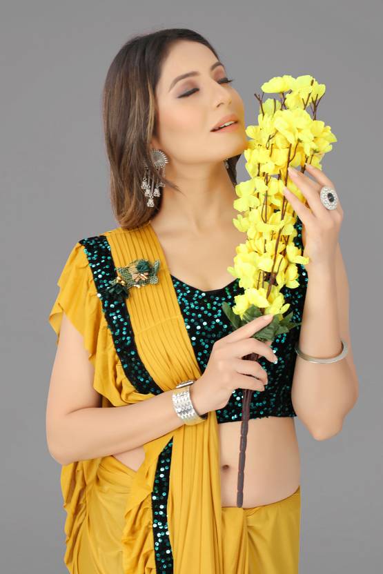 Saree Fabric: Lycra Blend, Blouse Fabric: Velvet Sequine, Saree Work: Solid, Blouse Work: Sequence Work, Saree Length: 5.30 Mtr, Blouse Length: 0.75 Mtr, Perfect Suit For: party celebration, wedding ceremony, Group Uniform, traditional wear