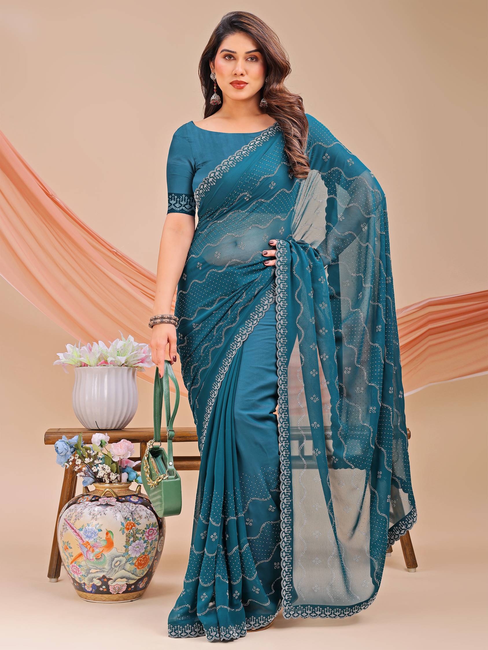 1 Saree with Unstitch Blouse Material