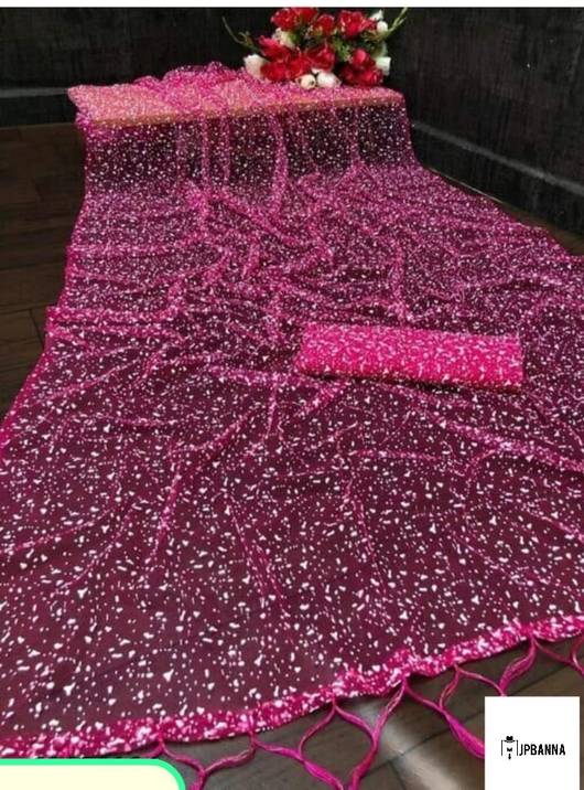 Saree Fabric: Net, Blouse Fabric: Net, Saree Work: Mukesh Rubber Print, Blouse Work: Mukesh Rubber Print, Saree Length: 5.50 Mtr, Blouse Length: 0.80 Mtr, Perfect Suit For: party celebration, wedding ceremony, Group Uniform, traditional wear