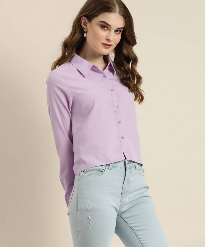 encore by INVICTUS Women Solid Casual Purple Shirt