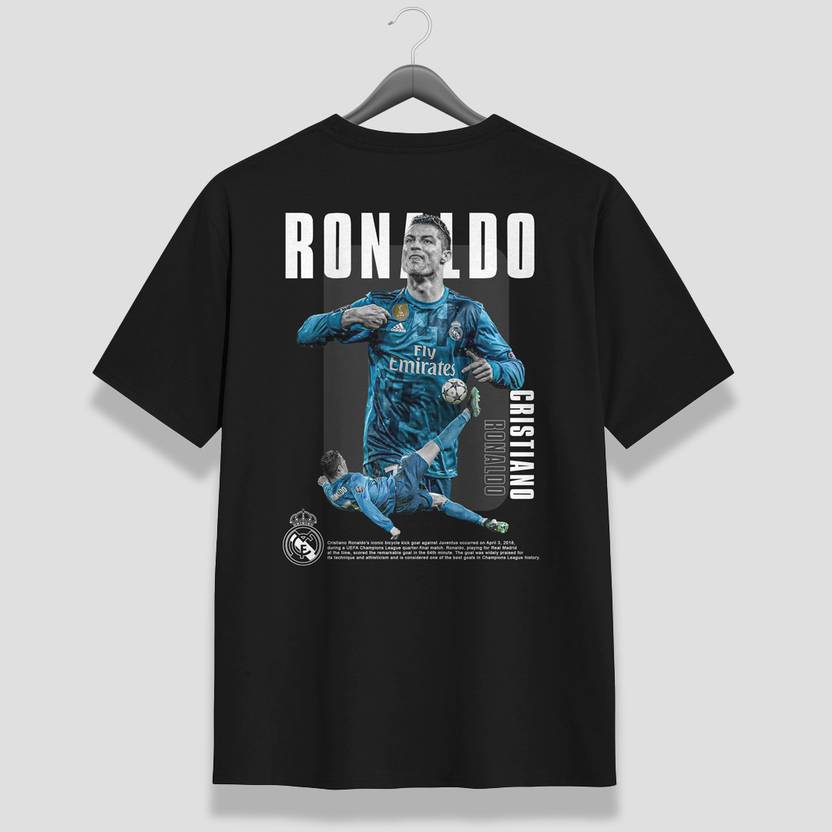 Celebrate the iconic moment with our Ronaldo Real Madrid Special T-Shirt! This exclusive design features Ronaldo's legendary bicycle kick against Juventus, a memory cherished by football fans worldwide.