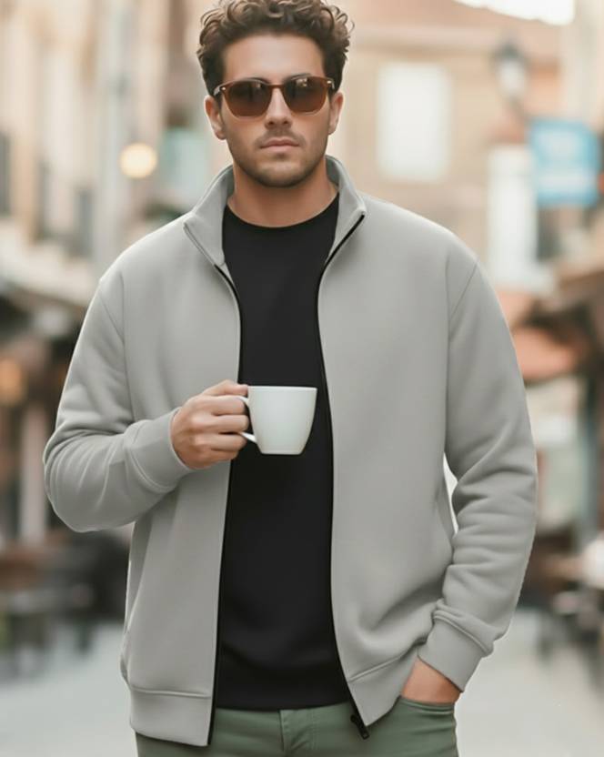 Men's Solid Grey Full Sleeve Turtle Neck Jacket