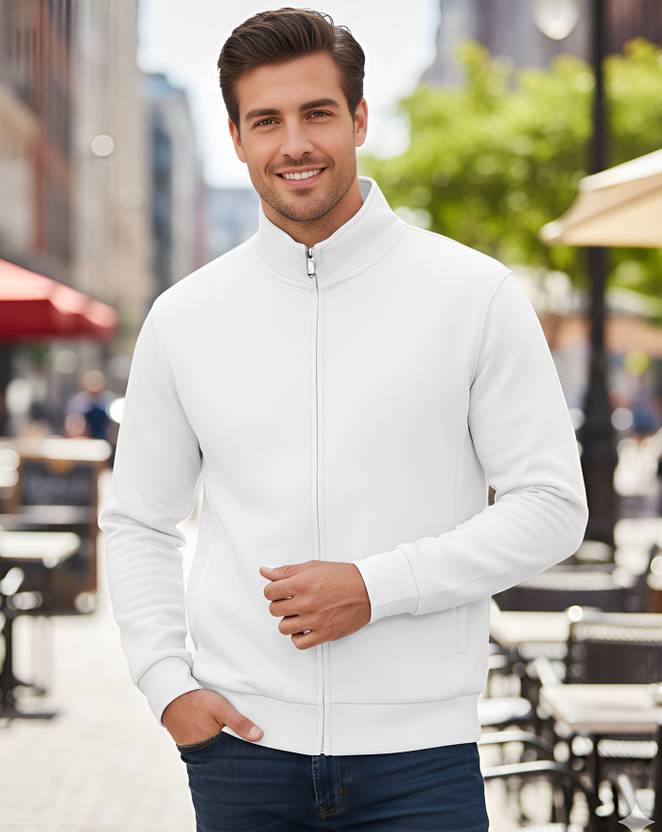 Men's Solid White Full Sleeve Turtle Neck Jacket
