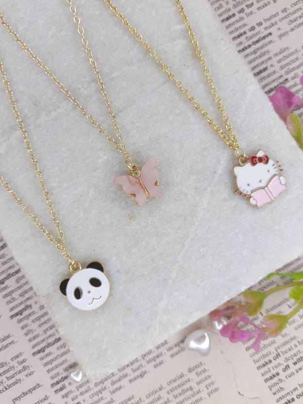 EnlightenMani Panda & Hello Kitty Necklaces Collection (Pack of 3) Gold-plated Plated Alloy Necklace