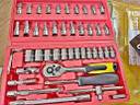Socket and Bit Set, 46 Pieces, pulled or pushed in one direction, contains a ratchet that loosens or tightens the bolt or nut attached to the socket. Turned the other direction, the ratchet does not turn the socket but allows the ratchet handle to be re positioned for another turn while staying attached to the bolt or nut. A switch is built into the ratchet head that allows the user to apply the ratcheting action in either direction, as needed, to tighten or loosen a fastener. This set is a basic need for repairs. Auto maintenance kit 1/4-inch car repair tools main features: type: hand tools, combination, wrenches, sockets, ratchet, vehicle maintenance and repair tools number of 46 pc.