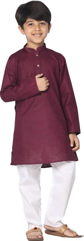 Enmozz Boys Solid Straight Kurta (Maroon)