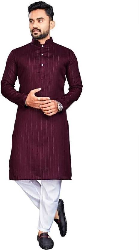 Look your ethnic best wearing this coloured kurta pyjama set. Made from Cotton regular-fit kurta pyjama set comprises a full-sleeved kurta and pyjama to complete your look.