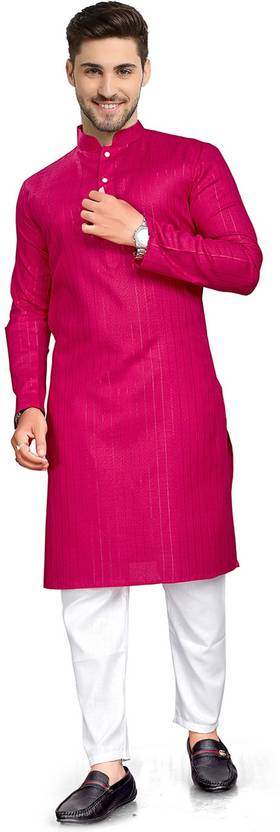 This traditional Indian kurta pajama 2-piece set includes a top (kurta) and a bottom. Loose-fitting sleeves and slits along the sides allow for an easy fit and let air circulate freely through the garment. The pant included in this kurta pyjama set is relaxed fit, Pyjama has 1 small pocket, Zipper and Draw-string closure. GREAT AS A GIFT FOR MEN: Everyone uses partywear on numerous occasions, give this kurta pajama set as a thoughtful gift for your loved one's next birthday, anniversary, wedding or any occasion. This is why it makes the perfect present for your dad, husband, son, or friend.