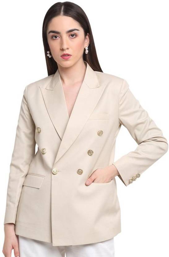ENNOBLE Women Solid Single Breasted Party Blazer (Beige)