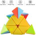 The Classic Color-Matching Puzzle - has 6 faces with 9 cells on each face and each face has a different color. To solve the puzzle, you have to bring all the cubes of a certain color to one face of the cube. And also this for all six colors. Cubing is known to develop cognitive and problem-solving skills among kids. Solving the cube requires discovering/remembering algorithms (set of moves) to bring certain pieces in place in different scenarios. Along with refinement of this skill brings improvements in any area that requires applying rules and formulas in various different situations such as math and even languages. Minimum friction between internal moving parts allows super smooth rotations. One can rotate layers with a finger touch. Moderate size and low weight make it stable and easy to operate in a single hand. In short, it is your perfect companion for Speed Cubing! Sticker-less design and bright colors make it look very attractive. You can keep it on your work desk, study table, in the drawing-room or carry it with you when on the go. The cube has frosted surface. The advantages of frosted surface are many. Four distinct advantages are as follows: 1. High resistance to scratching even with long and extensive use 2. Low reflection. The colours are easy to recognise even in low dim light 3. Resistance to finger print. The surface remains clean. 4 feels more texture. It helps in improving your child's concentration and memory power. It sharpens the brain. It is very beneficial for young and old brains alike. Triangle puzzle speed cube stickerless is the classic colour-matching puzzle that's a great mental challenge at home or on the move. Turn and twist the sides of the cube so that each side of pyramid only has one colour. Suitable for beginner and professional player. Great corner cutting, tension adjustable. It doesn't corner twist as often nor does it lock up. Difficult to pop, good control of the cube, comes pre-lubricated and tension definitely a Good choice for you to improve personal record in competition. This cube can be used for international competition. Combines high performance designs with good value. The stickerless pyramid never requires stickers, crafted with original and non-toxic, reliable, and lightweight and comfortable in the hand, harmless to human and environment.