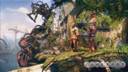 Enslaved is a post-apocalyptic retelling of the classic 400-year old novel Journey to the West. Set 150 years from now, the world has been ruined by war and ecological disaster with only a handful of survivors remaining. In Enslaved, players take on the role of Monkey, a strong and athletic, yet solitary figure, who been captured by one of the mysterious slave ships, which harvest the remaining population and take them out west never to return. Trip, a technologically savvy young woman who has also been imprisoned by the same ship, manages to escape. She quickly realizes that Monkey, with his raw strength and power, is her only hope to survive the perilous journey back to her home. She hacks into a slave headband and fits it on Monkey, linking them together if she dies, he dies Her journey has now become his and Monkey must now travel west alongside Trip as they traverse a demolished world, under constant threat of capture and mortal peril.