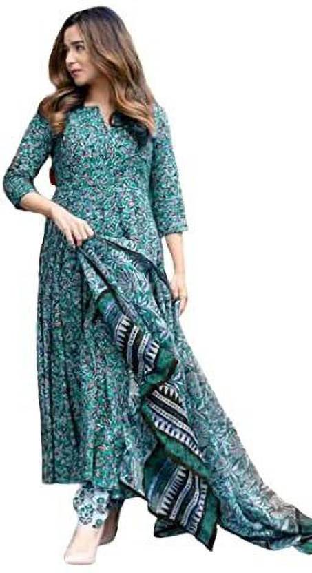 ENSURA Women's Cotton Anarkali Kurta Palazzo Pant With Dupatta Floral Print Anarkali Kurta, Bottom & Dupatta Set