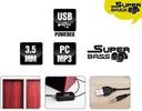 Charge current voltage: DC 5.V 500MA output power: 5Wx2 output impedance: 4OHM 5W Supporting Line-out sound signal directly connected to Power Amplifier and computer input External Volume Controller