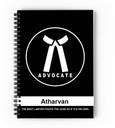 Here is premium quality spiral notebook for Advocate and Lawyer. This notebook is A5 sized, with dimensions of 5.5" ? 8.3". The soft cover is made of 300 GSM Premium Digital Paper and laminated with a Matt finish for durable elegance. Number of pages: 140(70 leaves),(100 GSM), Unruled. Cover Type - Metal Wire Bound, Soft Cover(300 GSM). It will help in keeping all special notes and thoughts. Make notes of just about everything you can think of - Creative Ideas, Story Writing, To-Do Lists, Travel Itineraries, Facts and Figures, Events, Meetings, Quotes, Goals, Recipes, Everyday Experiences and More.