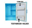 Epraiser SMALL MINI BATHROOM RACK SHELF STORAGE BOX WITH MIRROR WALL DECOR Plastic Wall Shelf (Number of Shelves - 3, Blue, White)