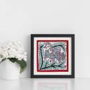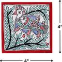 ePrashast Original Handmade Peacock Madhubani Painting With Frame (4*4) Pastel 7 inch x 5 inch Painting (With Frame)