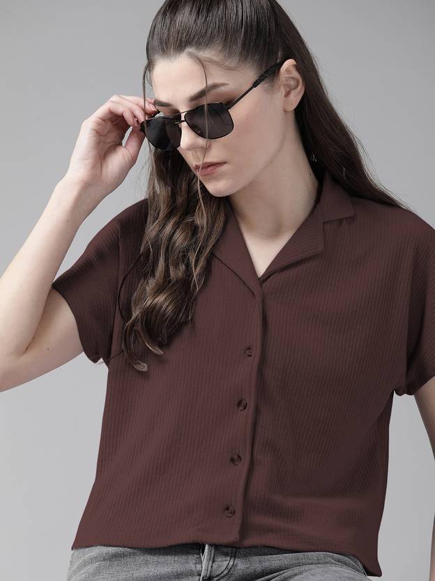 ERICAVIĀ Women Regular Fit Solid Spread Collar Casual Shirt