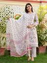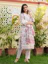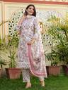 Women Checkered Cotton Silk Anarkali Kurta (Pink)