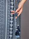This is Sanganeri Kurta which will make you feel gorgeous and look attractive in the party. You can wear it with jeans, leggings or palazzo. There is a very beautiful Rajasthani print on it. The print on it is in dark blue color and white color has been used in the background. High quality rayon fabric has been used to make it.