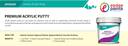Acrylic based ready to use putty for interiors new as well as repainting. Premium Acrylic Putty is formulated using special binder and pigments which makes it easy for application, sanding and levelling as well., Open the cracks shape using a putty blade and clean well. Apply primer using brush and allow it to dry as recommended. Fill the cracks using appropriate Crack Filler, repeat application if required., Ideal for Interior Cement /Gypsum Plaster, Gypsum Board, Concrete Surfaces, Low VOC - A Green Concept Product White Color Smooth finish over levelled surfaces Easy to apply, Shelf life - 3 years if kept in original airtight container in upright position in a covered place