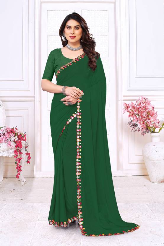 ESGUARDNOVELTY Solid/Plain Daily Wear Georgette Saree (Green)