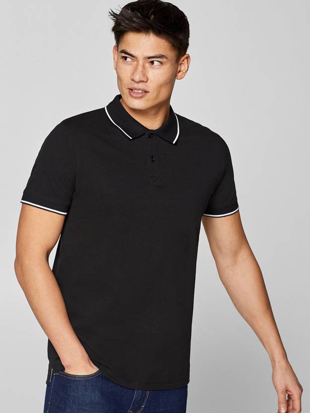 ESPRIT Solid Men Polo Neck Black T-Shirt
