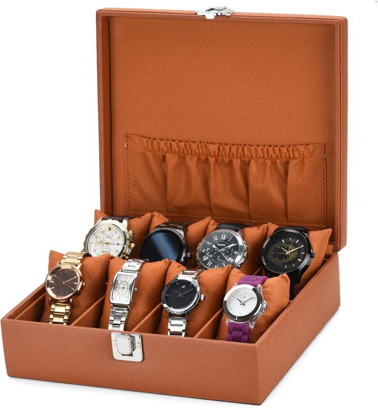 essart Watch Box Organizer Case With Elegant Style For Men & Women, watch box organizer 8 slots, watch storage box organizer (Tan)
