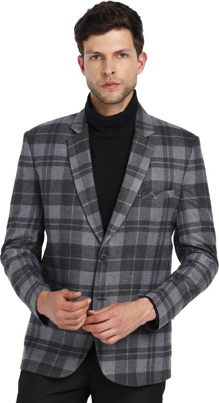 Essentiele Checkered Single Breasted Casual Men Blazer (Grey)