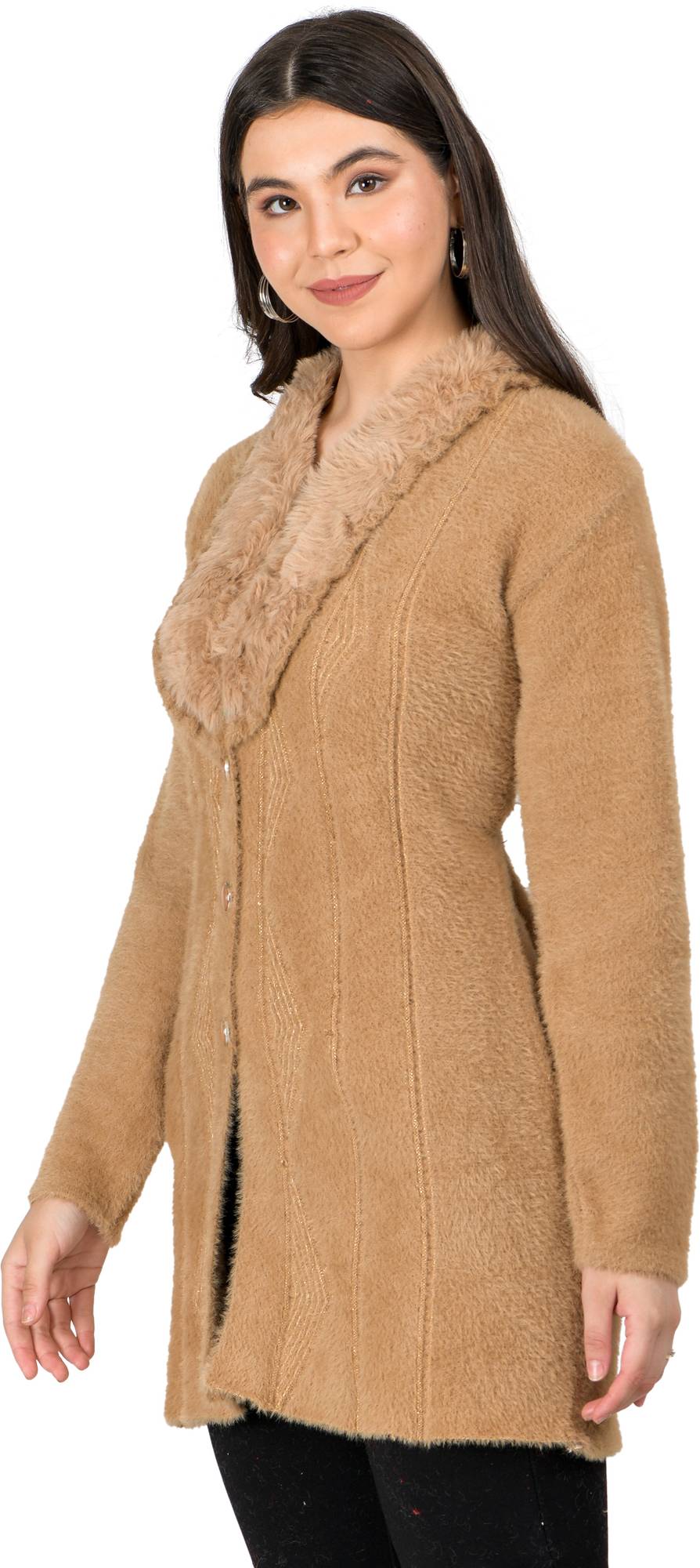 The notch lapel collar adds a sophisticated touch, making it suitable for formal outings, office wear, and evening occasions. Designed with full sleeves and functional side pockets, it combines practicality with refined styling. The longline length provides added warmth and makes it perfect for layering over tops, dresses, or sweaters.
