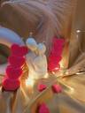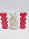 Transform your space into a haven of romance with this exquisite candle set from 'The Essenza.' Meticulously handcrafted, this set of three candles brings elegance and warmth to any setting. The white couple figurine candle, with its detailed sculpting and soft finish, is a timeless representation of love and unity. Paired with two striking red heart-stacked candles, this set offers a balanced blend of passion and serenity, making it the perfect centerpiece for romantic evenings.