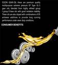 ESSON GEAR- OIL these are premium quality multipurpose extreme pressure EP Type GL-5 gear oils, blended from highly refined group I group II base oils with good oxidation stability. These oils are also doped with combinations of EP, antiwear additives to provide long running performance under sever duty conditions.