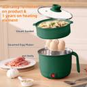 Multipurpose Electric Cooking Pot – 1.5L with Steel Inner Liner, Steamer, and Egg Tray – Ideal for Cooking Noodles, Pasta, Oats, Soup, and More -- Upgrade your cooking experience with this 1.5-liter multipurpose electric hot pot, a versatile and efficient kitchen appliance designed for quick and hassle-free cooking. Whether you are in a hostel, dormitory, small apartment, or office, this electric cooking pot with a heavy glass lid is perfect for preparing a wide variety of meals with ease. The inner liner of this electric pot is crafted from a ceramic-glazed steel coating, ensuring rust resistance, stain resistance, and food safety. The durable double-layer steel inner liner with a PP shell provides better heat insulation and prevents the outer surface from getting excessively hot, making it safe to touch during cooking. The anti-scald handle is designed for a comfortable grip, preventing accidental burns while handling hot meals.